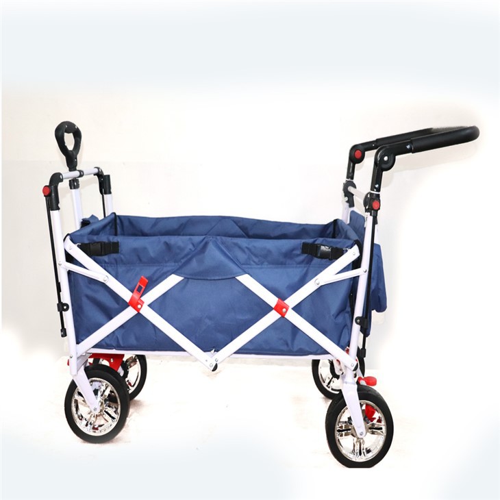 - This cart can handle large loads and tough terrain because it is made of robust iron with a protective spray coating and double-layer polyester fabric. The 8-inch PVC wheels make it easy to maneuver on any surface.